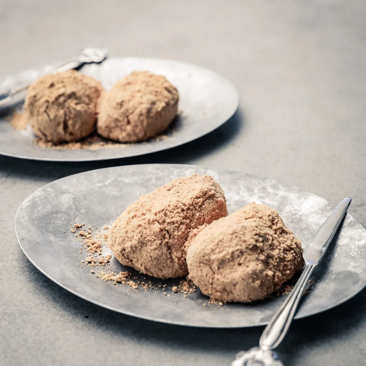 京きな粉を深煎りし、電氣餅をつかったふわふわのきな粉餅です。